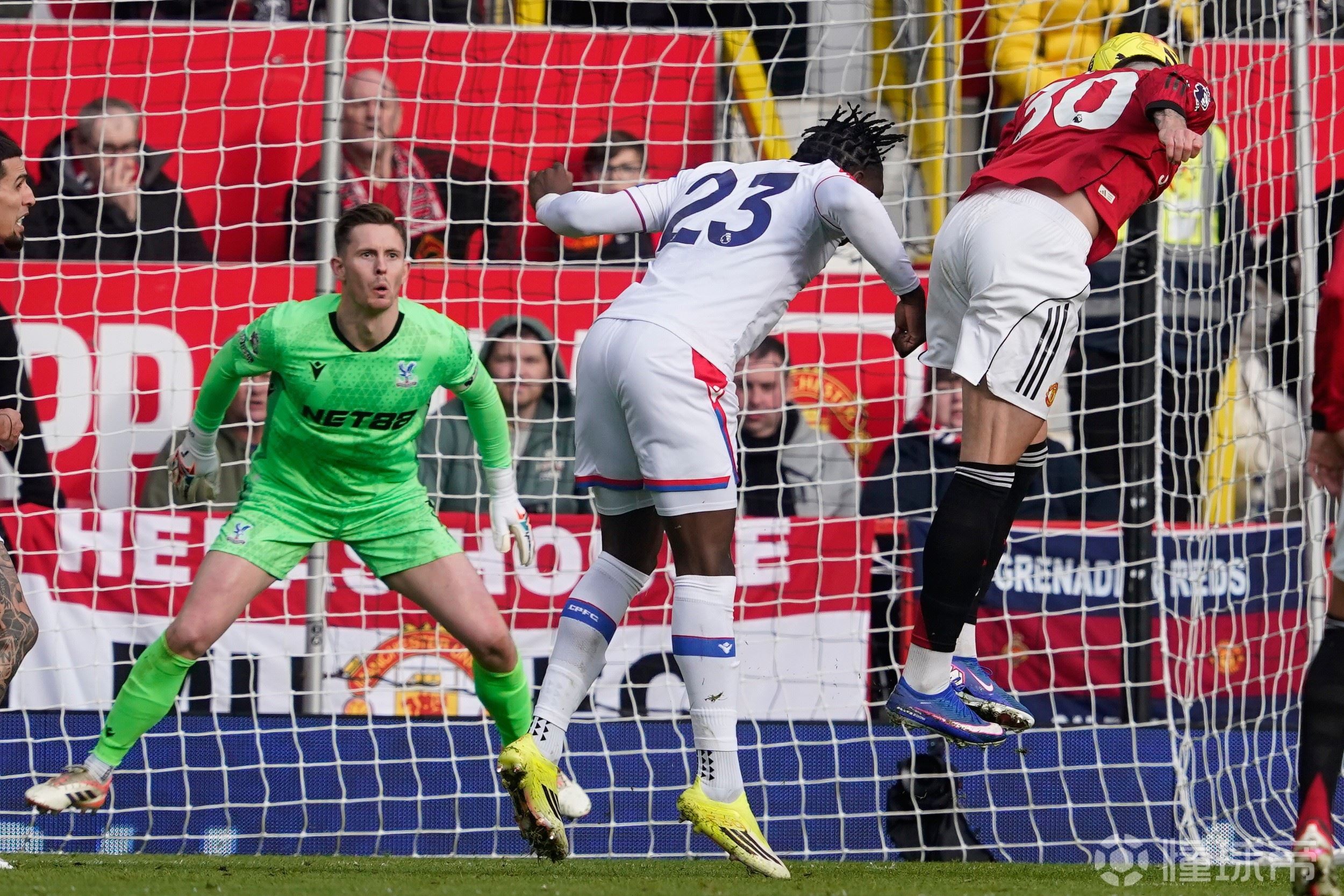 在英超第28轮曼联vs水晶宫的比赛中,曼联半场0-1落后,下半场库尼亚造红点,B费点球扳平。第65分钟,水晶宫队解围不远,B费右路得球后完全无人盯防,他将球吊入禁区,身高1米95的大中锋谢什科力扛康沃,抢在前点顶出了一记力量十足的头球,让迪恩-亨德森无计可施!