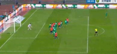 第87分钟,李源一主罚任意球斜传,克雷桑头球冲顶破门,2比1!