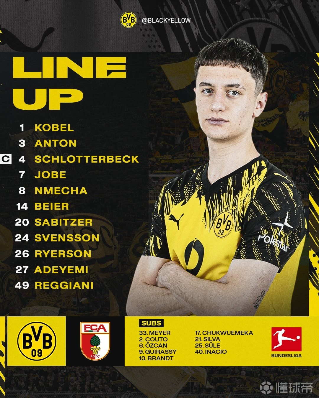 北京时间3月14日22:30,德甲联赛第26轮继续进行,多特蒙德坐镇主场迎战奥格斯堡。赛前双方首发阵容陆续公布: