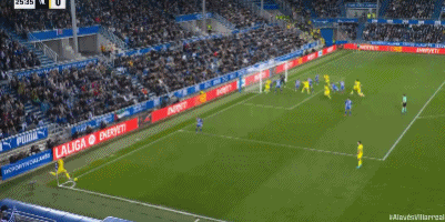 第40分钟,拉法-马林头球解围变乌龙,阿拉维斯1-0比利亚雷亚尔