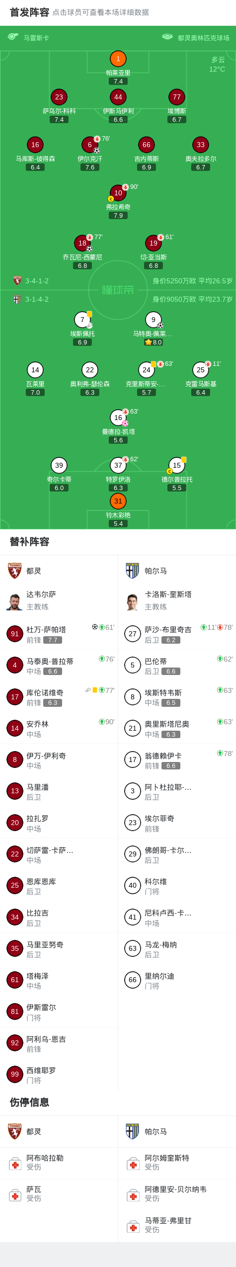 北京时间3月14日意大利足球顶级联赛 联赛 第29轮,都灵主场对阵帕尔马。都灵乔瓦尼-西蒙尼破门,伊尔克汗破门,杜万-萨帕塔破门。帕尔马马特奥-佩莱格里诺破门,曼德拉-凯塔自摆乌龙。最终比分都灵 4-1 帕尔马。