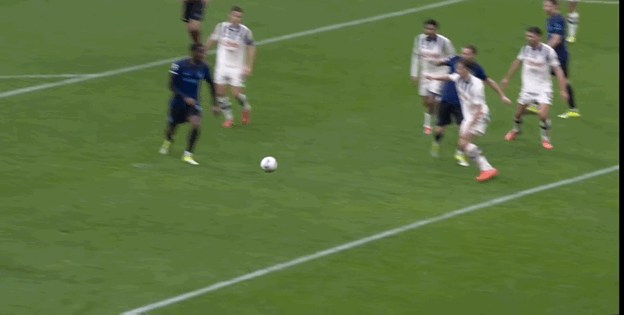 苏莱曼纳拿球后射门被索默扑出,被中路跟进的克尔斯托维奇补进空门。