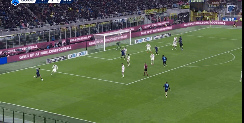 雨中作战,国际米兰被主裁判曼加尼洛强行逼平,让我们再看看亚特兰大的这粒进球。