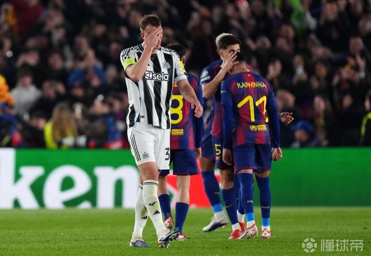 欧冠1/8决赛次回合,纽卡斯尔联客场2-7不敌巴塞罗那,据统计,这是英格兰球队在欧冠赛场遭遇的并列最大分差失利。