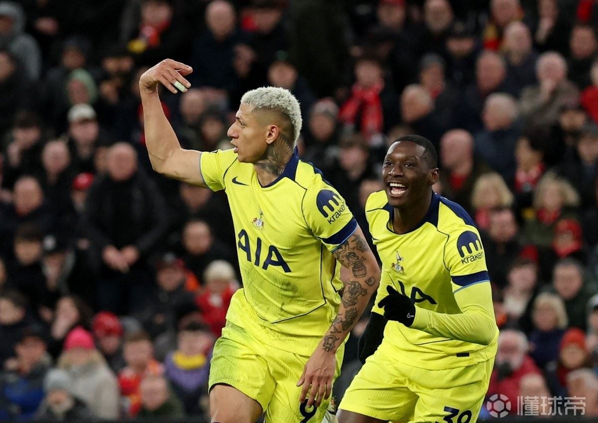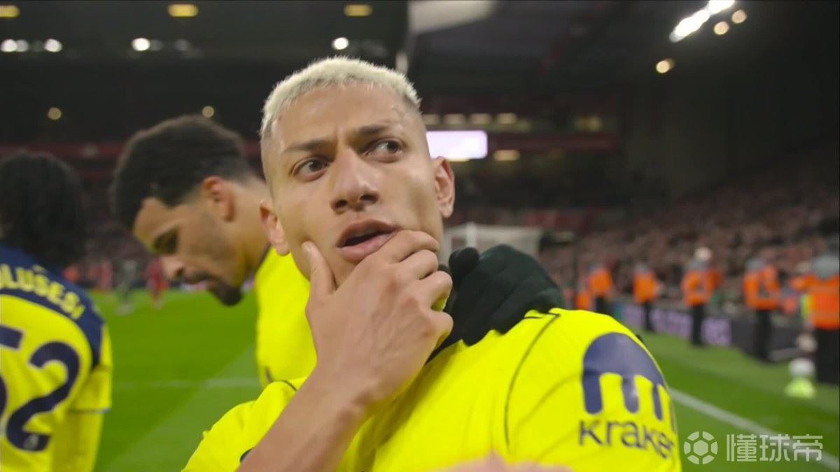 第90分钟,穆阿尼扛开范戴克送助攻,里沙利松推射破门,热刺1-1扳平!